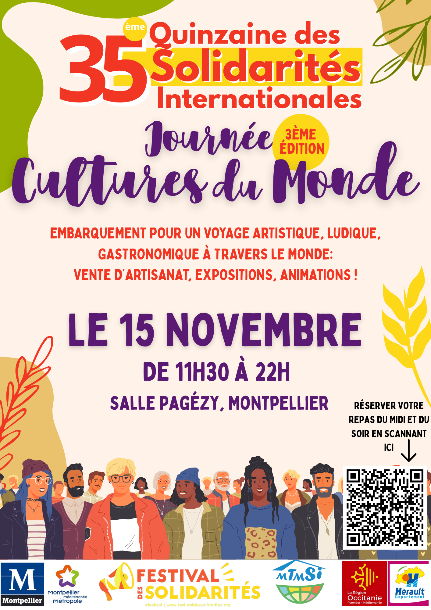 Repas Midi Poulet Braisé Côte d’Ivoire https://www.helloasso.com/associations/maison-des-territoires-du-monde-et-de-la-solidarite-internationale/evenements/repas-journee-culture-du-monde Repas Soir Paëlla : https://www.helloasso.com/associations/maison-des-territoires-du-monde-et-de-la-solidarite-internationale/evenements/repas-midi-journee-culture-du-monde