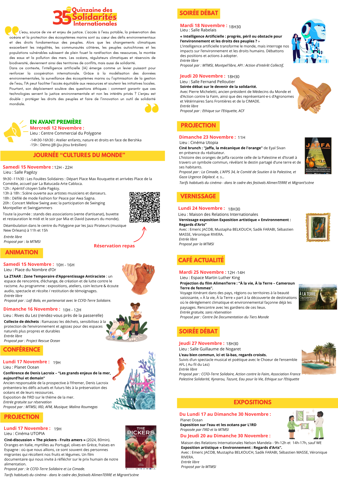 Retrouvez le programme complet de la 35ème Quinzaine des Solidarités Internationales du 15 au 30 Novembre 2025 !