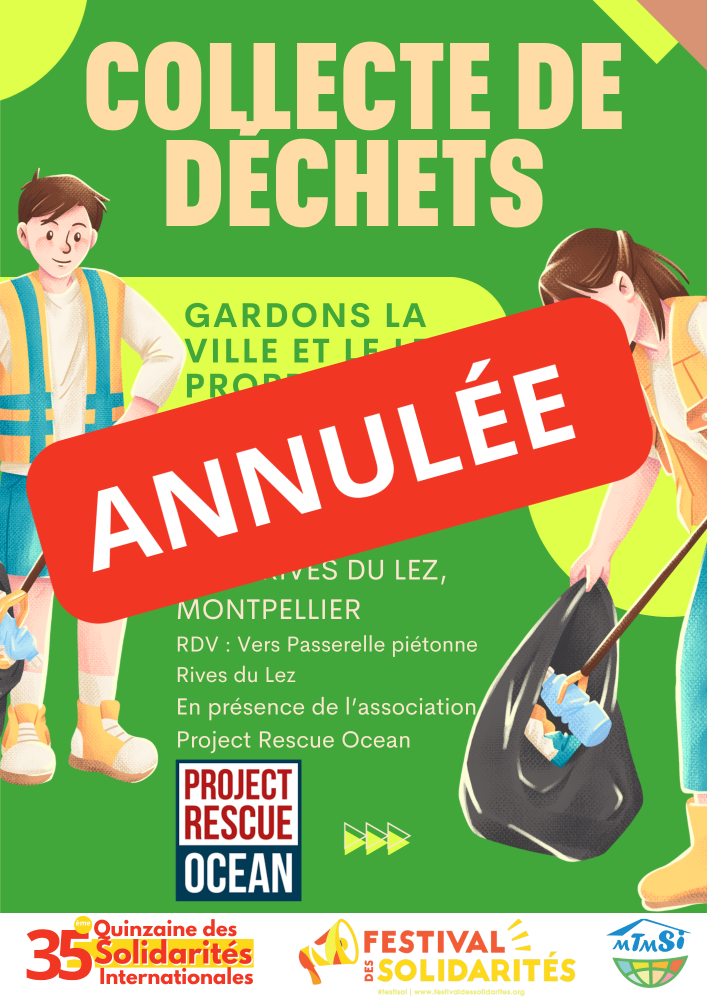 Malheureusement la collecte de déchet au Rives du Lez est annulée pour cause météorologique.